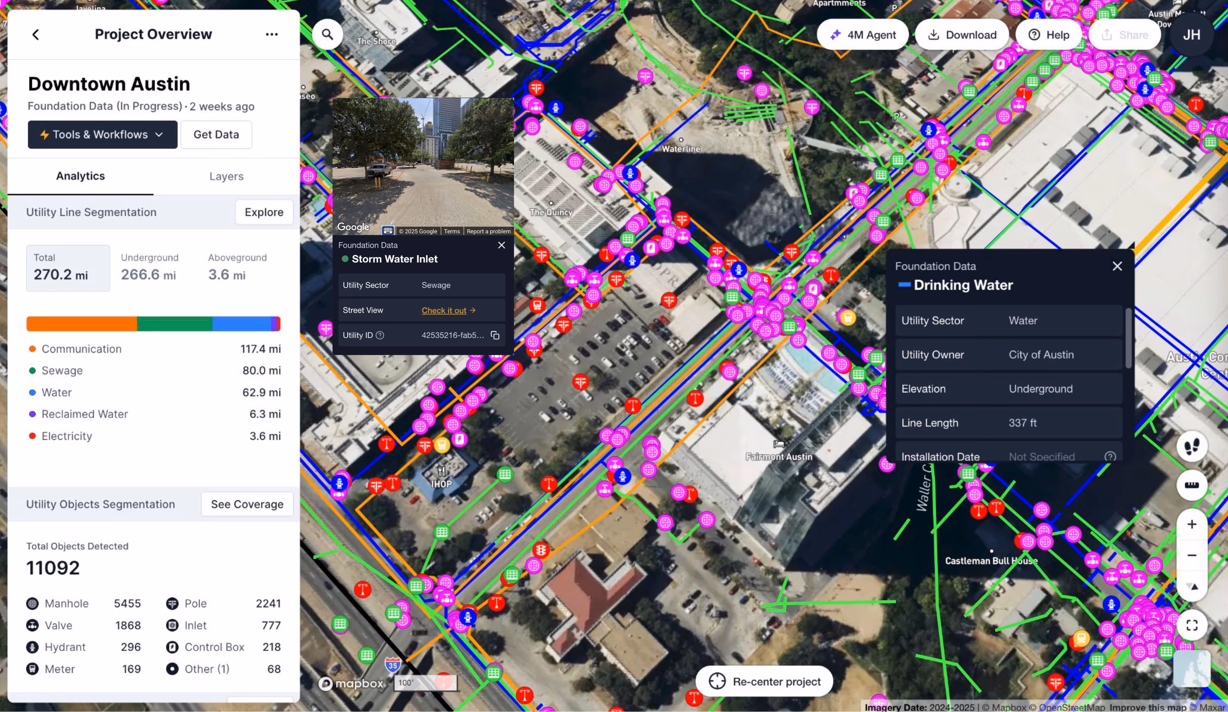 4M provides a central Utility AI mapping platform delivering instant, reliable utility data that stakeholders can trust and verify. 4M collects and synthesizes data from millions of offline utility records, blueprints, geoPDFs, and GIS layers. The platform augments the data with automated object detection and AI-generated lines, and derives AI-driven utility insights so project teams can make better decisions faster across the entire project lifecycle, from planning to execution to asset management. 4M’s data integrates with infrastructure workflows provided by industry-standard design, 3D modeling, and geospatial platforms. This enables professionals to work better together from one central source of truth. 4M is not just reliable data, it is the connective tissue that unites every stakeholder from project planning to maintenance, allowing them to transmit information, coordinate effectively, and build smarter, faster, safer infrastructure from the start.