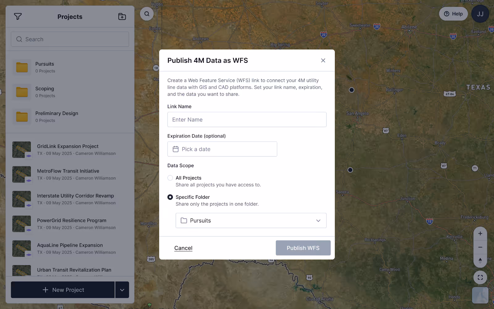 This is especially useful for teams managing projects across multiple regions or collaborating with external partners. For example, if you want to share a WFS link externally or limit access to data for a particular region, you can now publish only the relevant folder, keeping everything else private and organized.