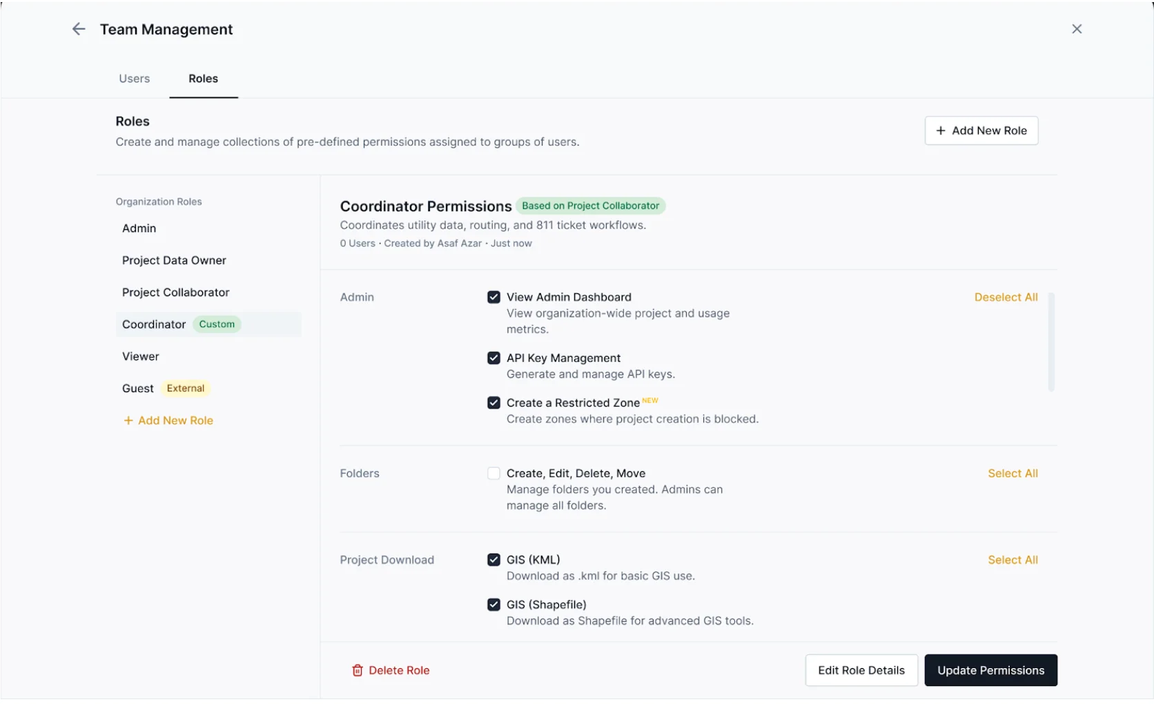An advanced digital online platform can also be used to improve collaboration by allowing for the assignment of different roles including Admin, Project Data Owner, Project Collaborator, Coordinator, Viewer, and Guest. These roles allow stakeholders from multiple teams to share the same comprehensive data. Stakeholders are not limited to facility owners, but also include project owners, oversight agencies, engineering consultants, general contractors, and subcontractors including excavator operators and locators.