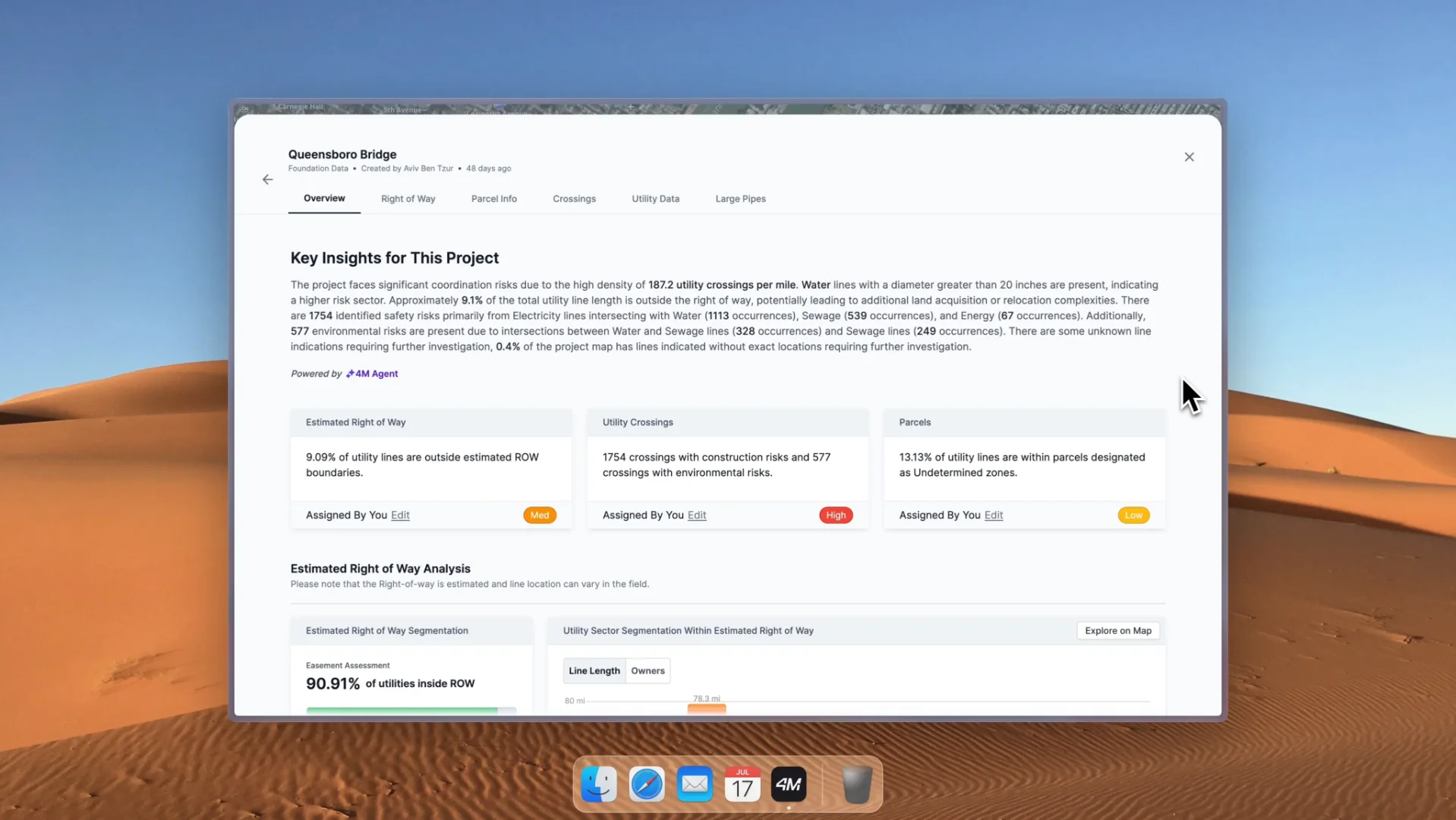 4M is currently developing multiple AI agents that can independently analyze utility data and deliver crucial insights and calculations to help planners, estimators, and project managers. These range from estimating the cost of a SUE investigation based on the complexity of the project site, to comparing two possible routes for a new utility line by predicting the number of utility conflicts or other high-risk factors.