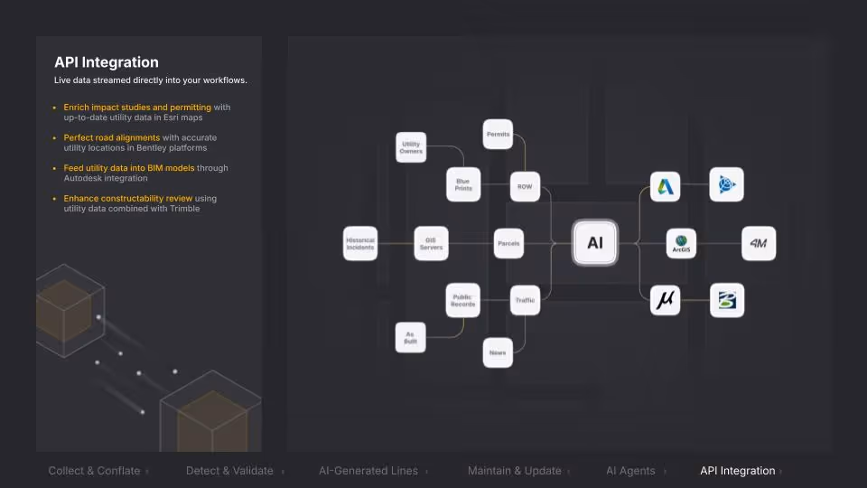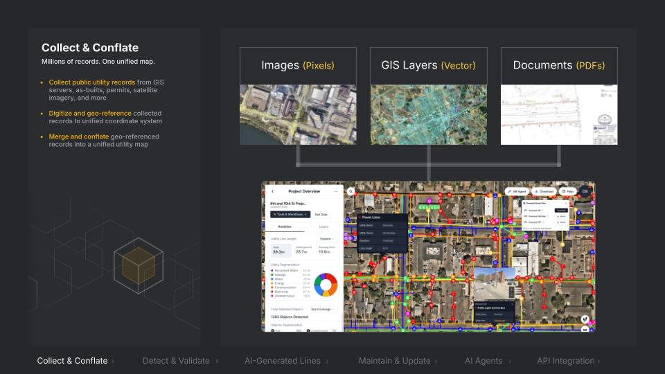 Today's industry still relies heavily on manual investigations, traditional tools, and limited digitization. There's no central source of truth for utility data that's up-to-date, interconnected, and accessible to all stakeholders.