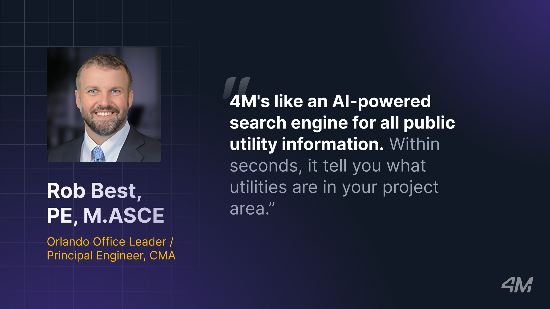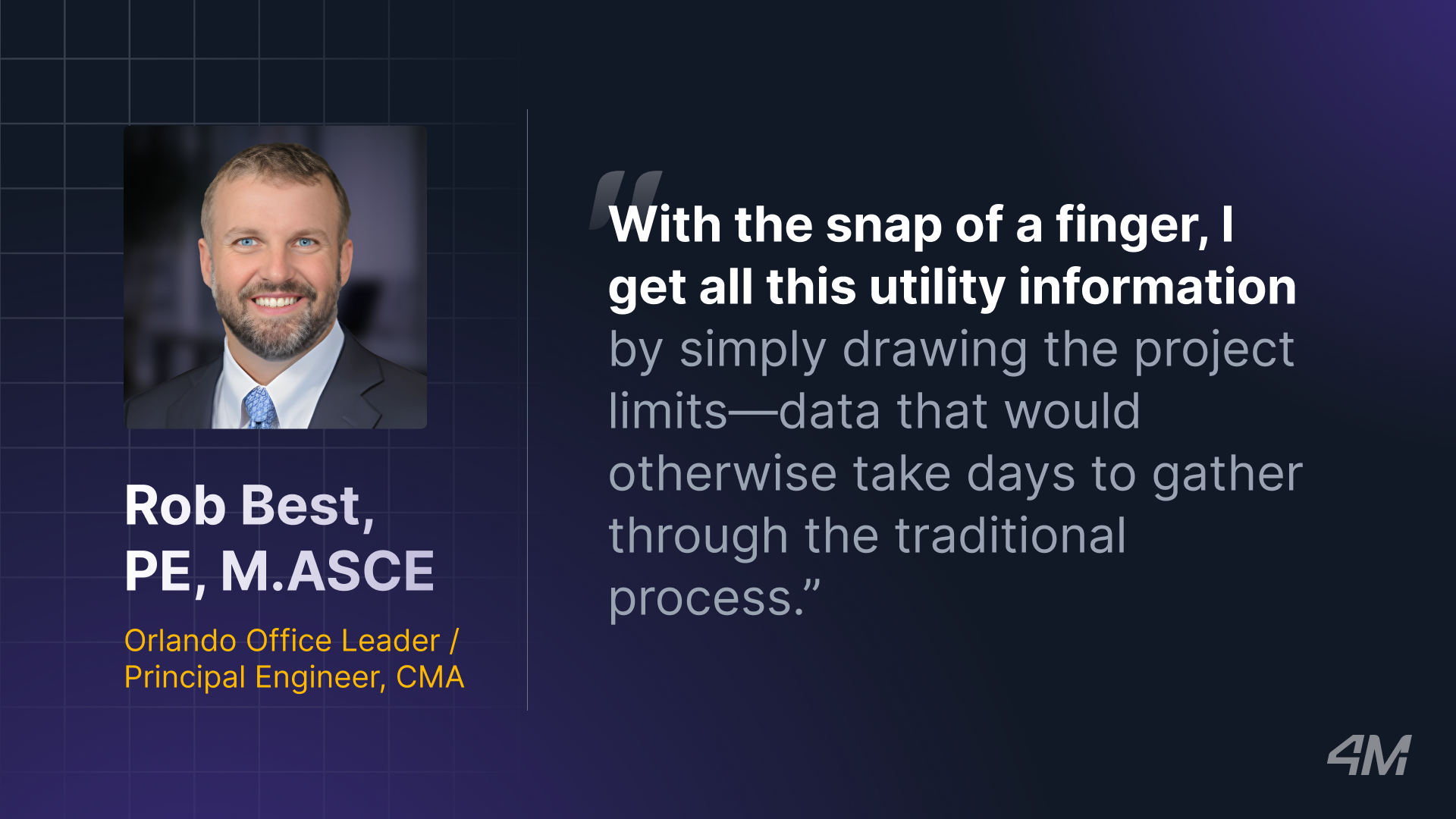 Hear what Rob Best, Principal Civil Engineer and Orlando Office Leader at CMA, had to say about his experience with 4M.